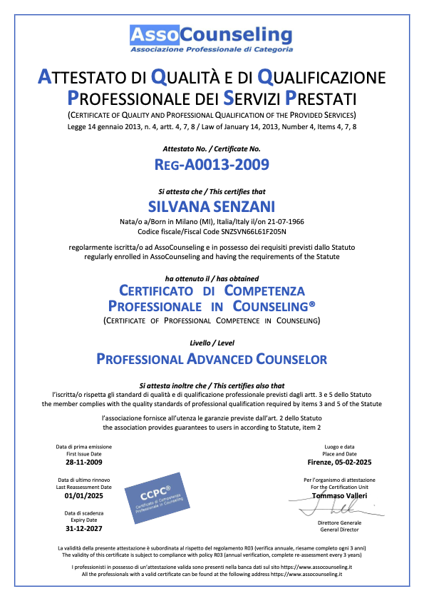 Certificato ASSO Counseling N.° Reg-A0013-2009